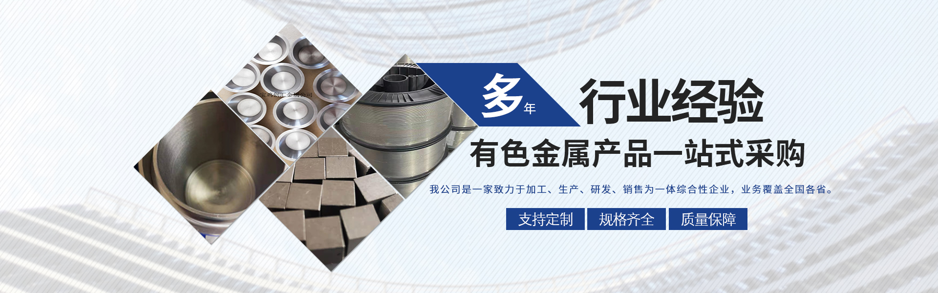 寶雞市創(chuàng)匯金屬材料有限公司,位于有“中國鈦谷”之稱寶雞寶鈦路南段,這里也是國家重點支持和扶持的有色金屬材料資源產(chǎn)業(yè)基地,我司專業(yè)從事鈦、鋯、鉿、鎳鉻、鎢鉬、鉭鈮、合金材料、復(fù)合材料,板、棒、絲、管、箔材等,設(shè)備制造,金屬制品機(jī)械加工銷售。